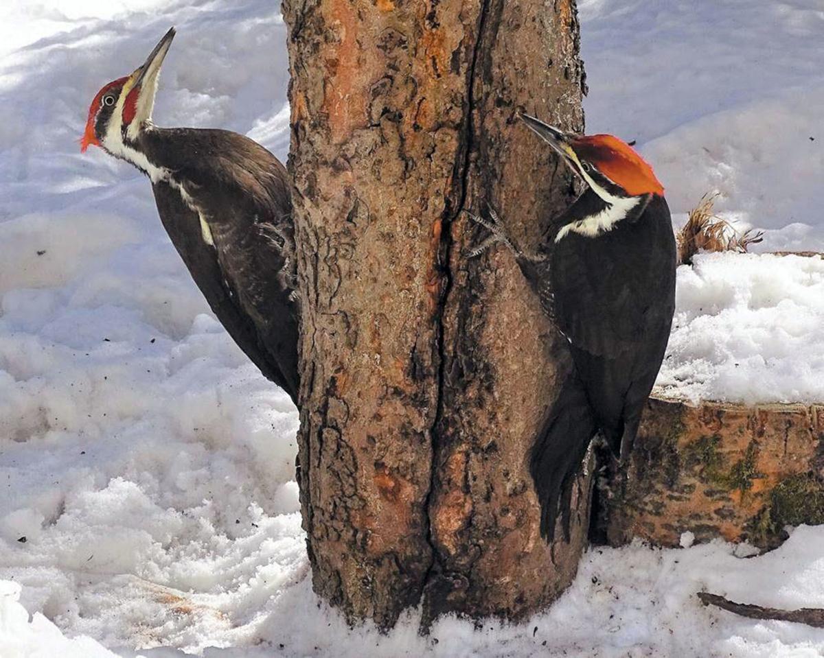 Focus On Nature Rival Male Pileated Woodpeckers Perform Silent Beak A Boo Dance Outdoors Leadertelegram Com